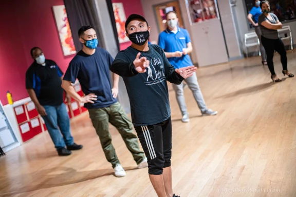 Photo above: Instructor Mario teaching a salsa class during the pandemic.